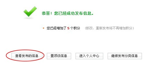 ①在108社区网站上发布店铺信息 ②在您发布信息成功之后,立刻点击提示页面左下方的"查看发布的信息",如图:或者进入个人中心查看黄页信息,如图: